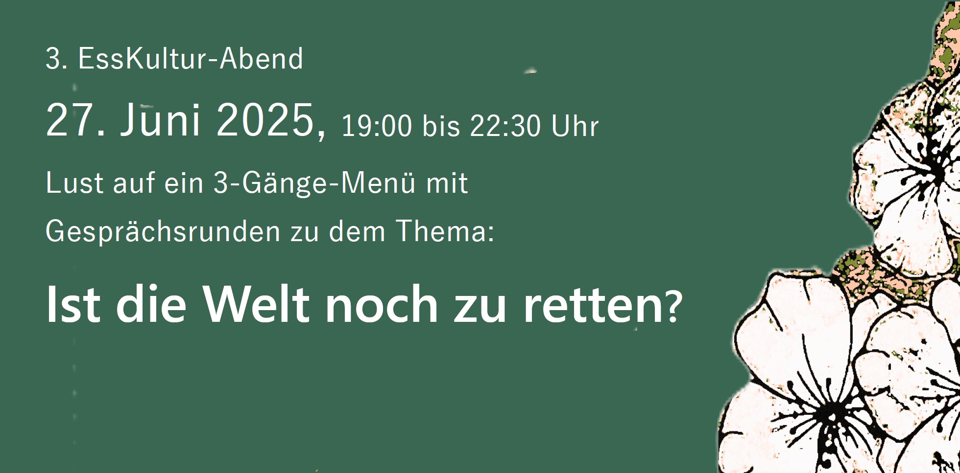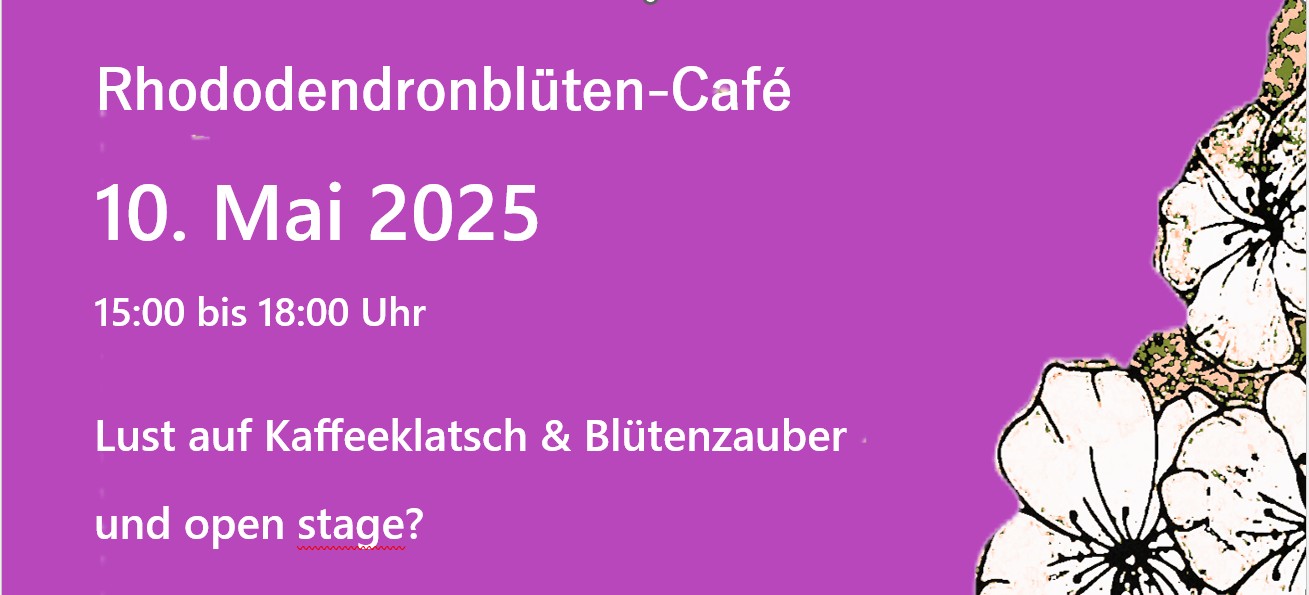 Kulturhof Hatzfeld Hatzfeld 4, Eitorf, GermanyLust auf Kaffeeklatsch, Blütenzauber & open stage? Wir laden Euch herzlich ein zum Rhododendronblüten-Café. Es erwartet Euch ein entspannter Nachmittag mit duftendem Kaffee und Tee, hausgemachtem Kuchen, selbstgepresstem Apfelsaft und einer traumhaften Rhododendronblüte. Kommt vorbei, bringt gerne Familie & Freunde mit und genießt eine schöne Zeit mit uns! Hinweis: Essen und Getränke auf Spendenbasis – […]
